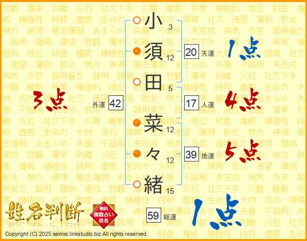 小須田菜々緒さんの総運は59画の1点!