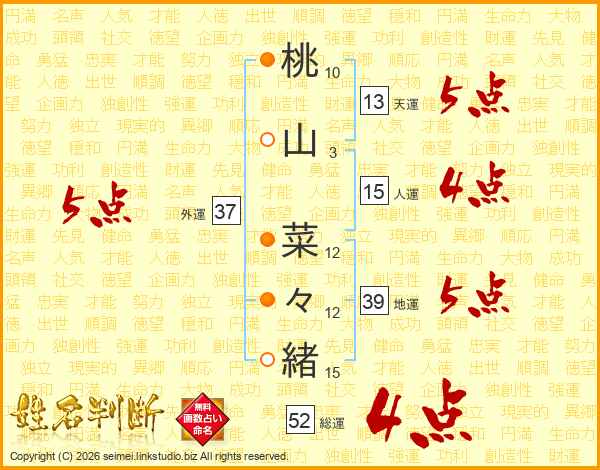 桃山菜々緒さんの外運は37画の5点!