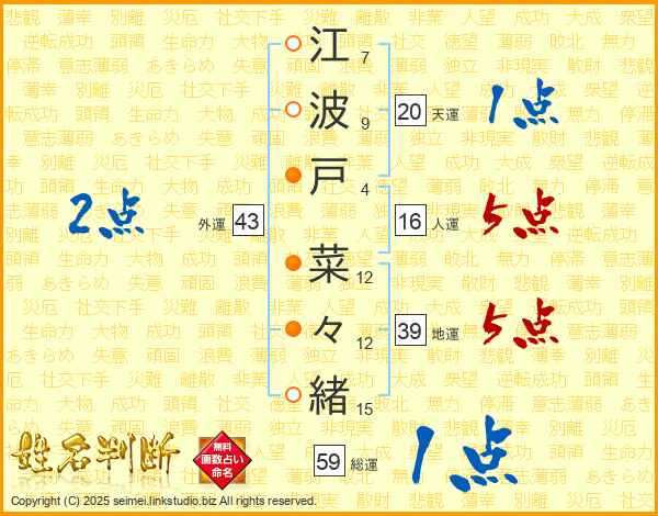 江波戸菜々緒さんの総運は59画の1点!