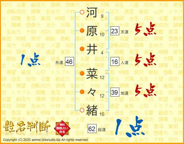 河原井菜々緒さんの総運は62画の1点!