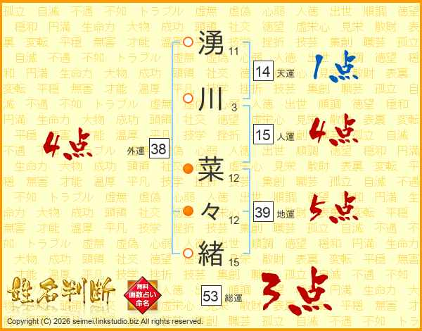 湧川菜々緒さんの総運は53画の3点!
