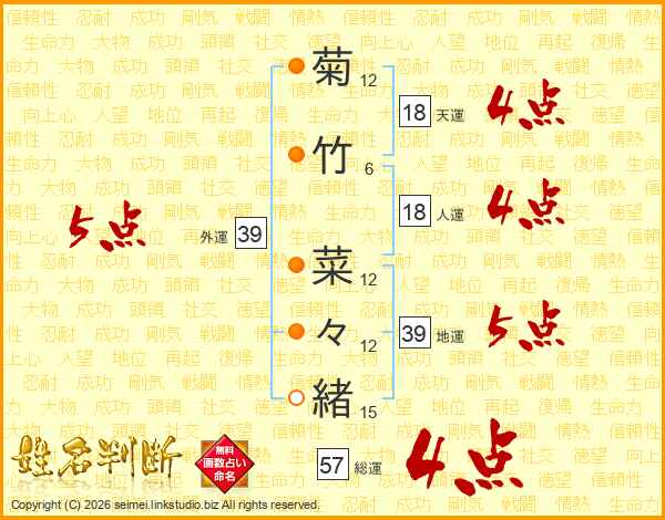 菊竹菜々緒さんの外運は39画の5点!