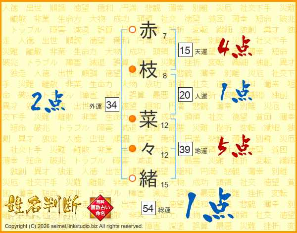赤枝菜々緒さんの外運は34画の2点!