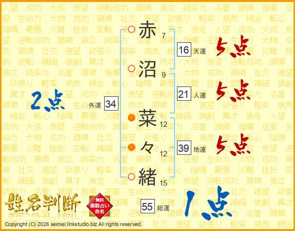 赤沼菜々緒さんの総運は55画の1点!