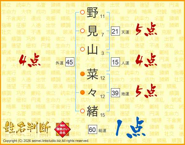 野見山菜々緒さんの外運は45画の4点!