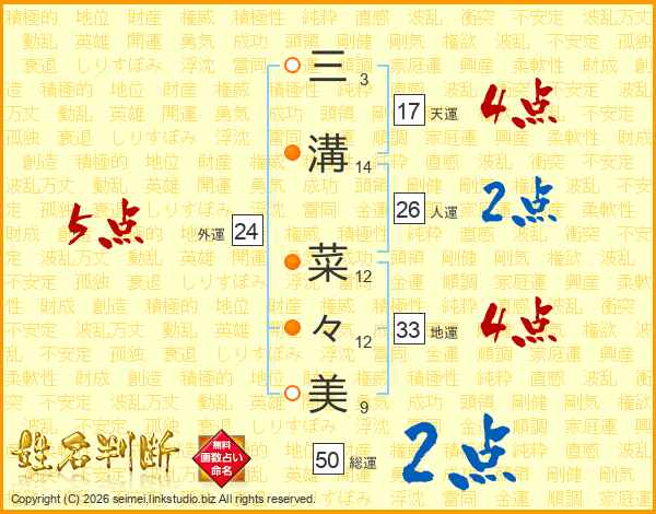 三溝菜々美さんの外運は24画の5点!