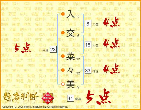 入交菜々美さんの総運は41画の5点!