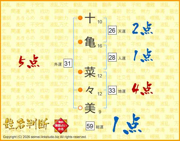 十亀菜々美さんの総運は59画の1点!