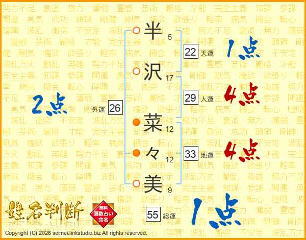 半沢菜々美さんの総運は55画の1点!