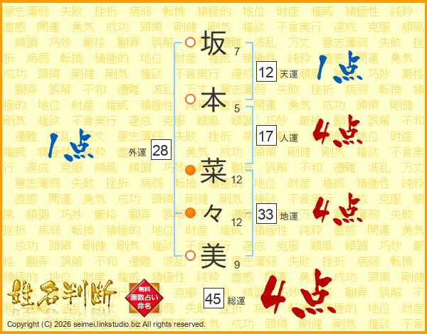 坂本菜々美さんの総運は45画の4点!