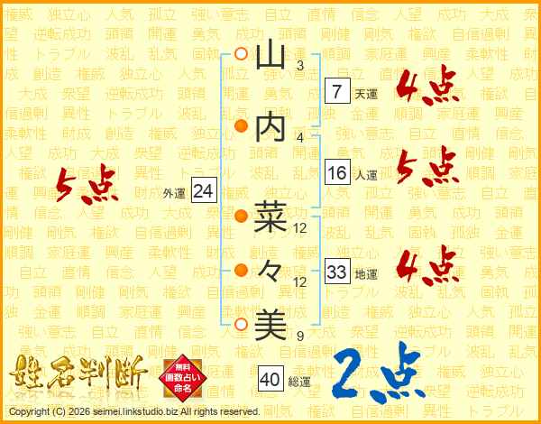 山内菜々美さんの総運は40画の2点!