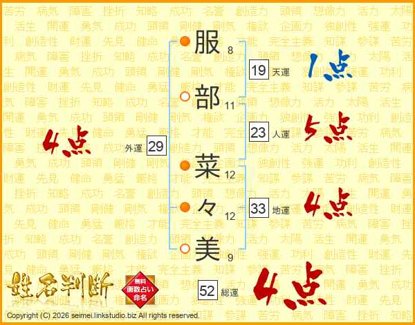 服部菜々美さんの総運は52画の4点!