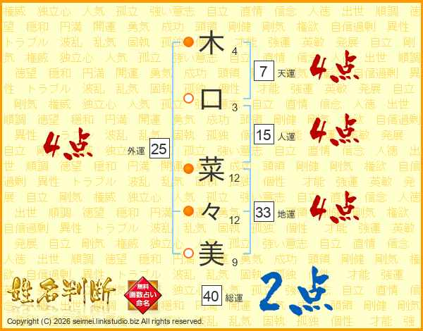 木口菜々美さんの総運は40画の2点!
