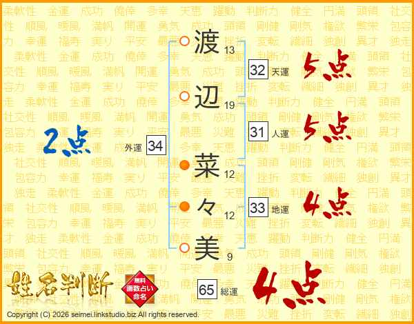 渡辺菜々美さんの総運は65画の4点!