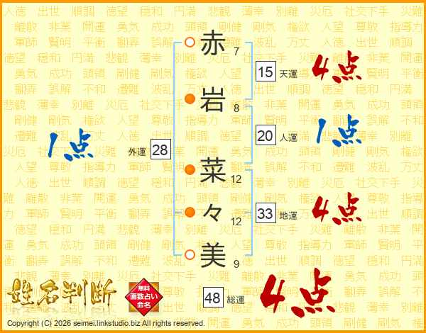 赤岩菜々美さんの総運は48画の4点!