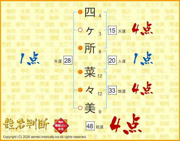 四(4画)ヶ(3画)所(8画) 菜(12画)々(12画)美(9画)