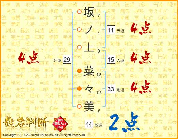 坂ノ上菜々美さんの天運は11画の4点!