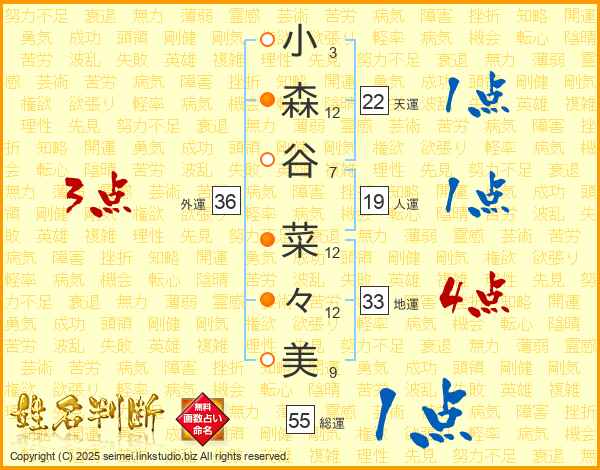 小森谷菜々美さんの外運は36画の3点!