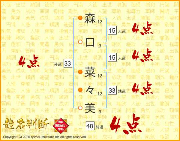 森口菜々美さんの外運は33画の4点!
