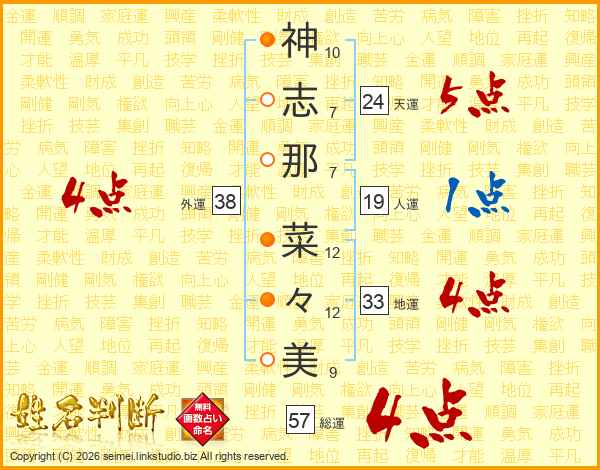 神志那菜々美さんの外運は38画の4点!
