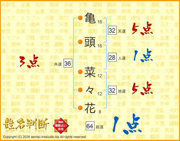 亀頭菜々花さんの総運は64画の1点!