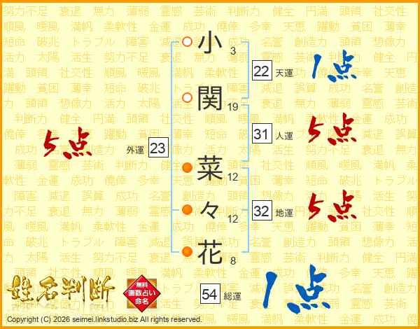 小関菜々花さんの総運は54画の1点!
