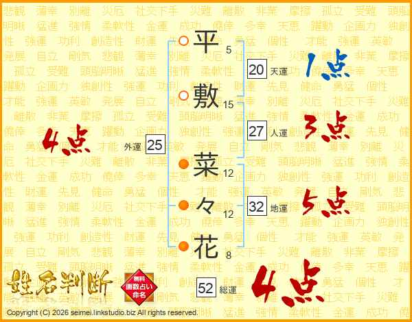 平敷菜々花さんの総運は52画の4点!