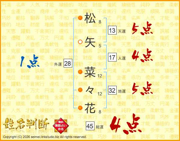 松矢菜々花さんの総運は45画の4点!