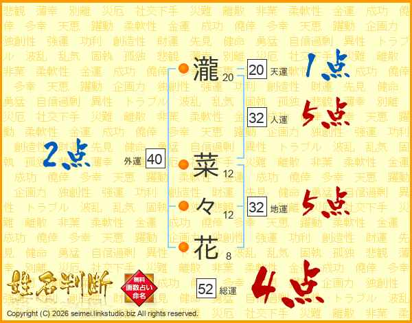瀧菜々花さんの総運は52画の4点!