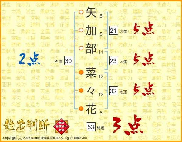 矢加部菜々花さんの総運は53画の3点!