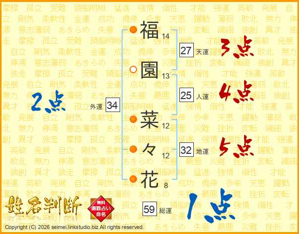 福園菜々花さんの外運は34画の2点!