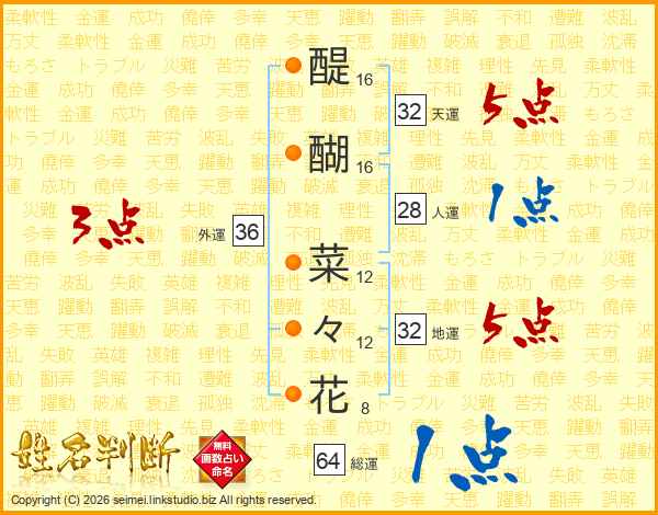 醍醐菜々花さんの総運は64画の1点!