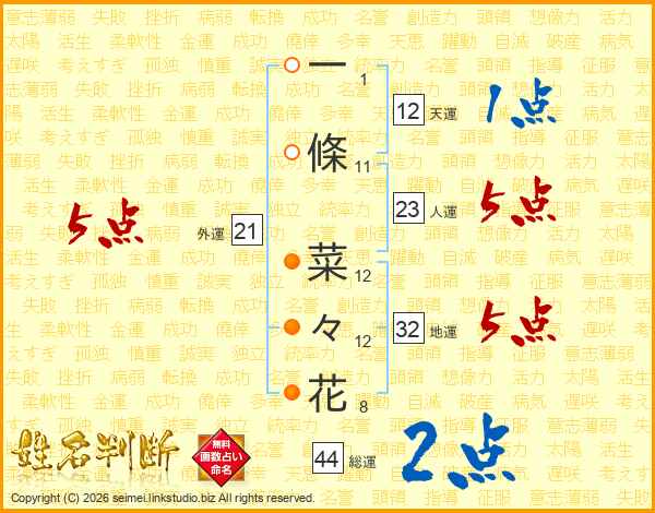 一條菜々花さんの外運は21画の5点!