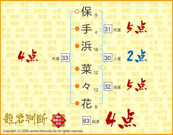 保手浜菜々花さんの総運は63画の4点!