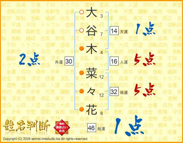 大谷木菜々花さんの総運は46画の1点!