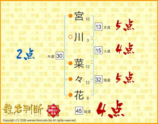 宮川菜々花さんの総運は45画の4点!