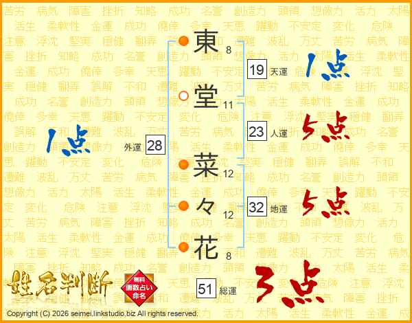 東堂菜々花さんの総運は51画の3点!