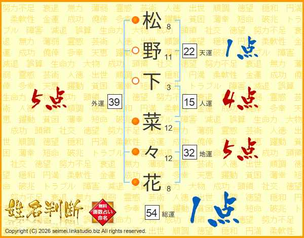 松野下菜々花さんの外運は39画の5点!