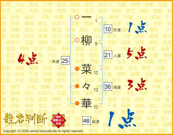 一柳菜々華さんの総運は46画の1点!