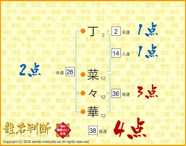 丁菜々華さんの総運は38画の4点!