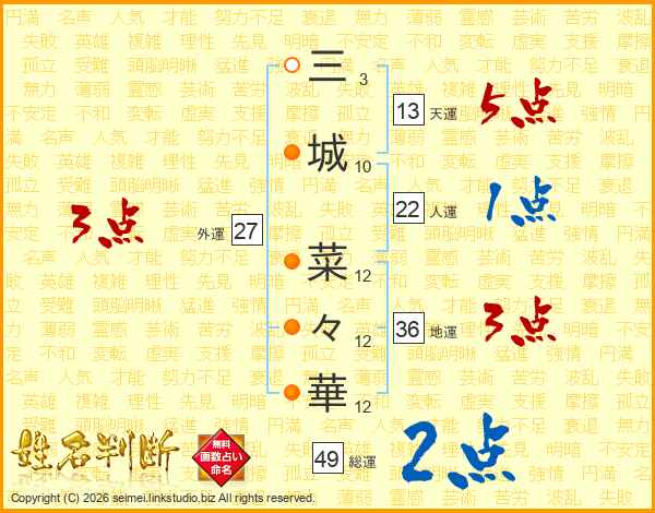 三城菜々華さんの総運は49画の2点!