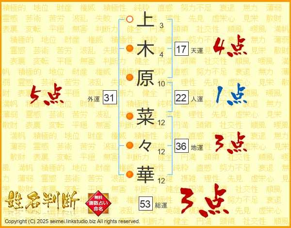 上木原菜々華さんの外運は31画の5点!