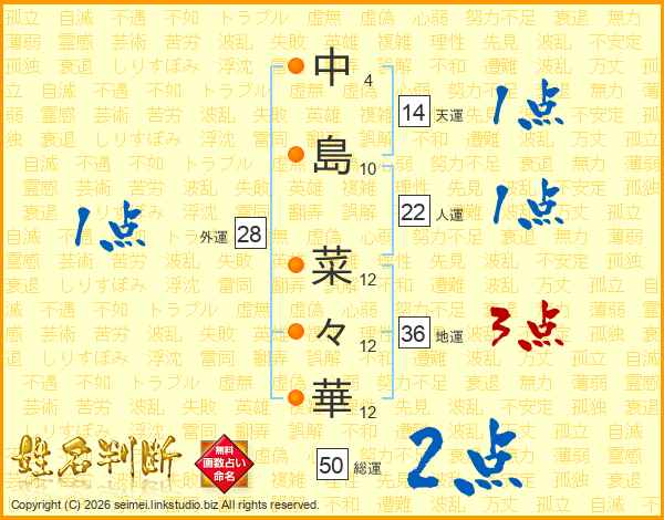 中島菜々華さんの天運は14画の1点!