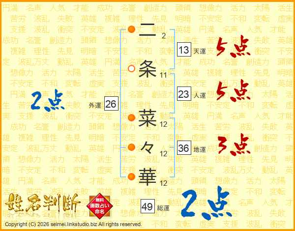 二条菜々華さんの外運は26画の2点!