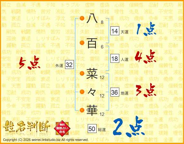 八百菜々華さんの外運は32画の5点!