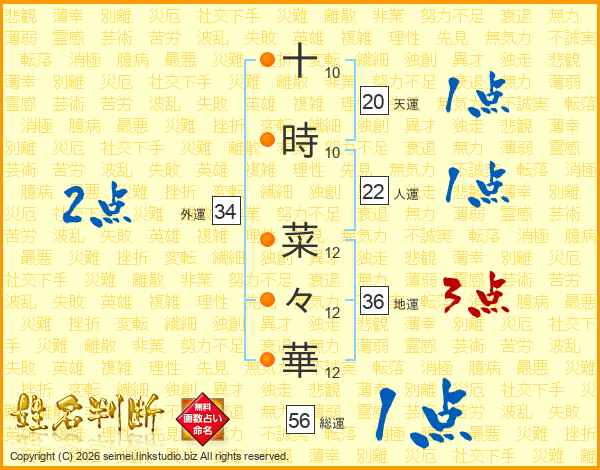 十(10画)時(10画) 菜(12画)々(12画)華(12画)