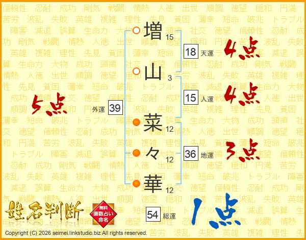 増(15画)山(3画) 菜(12画)々(12画)華(12画)