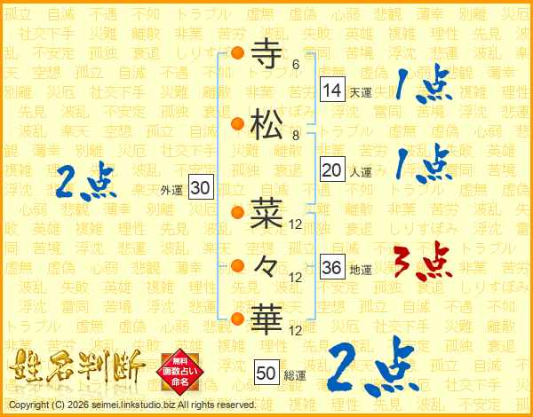 寺(6画)松(8画) 菜(12画)々(12画)華(12画)