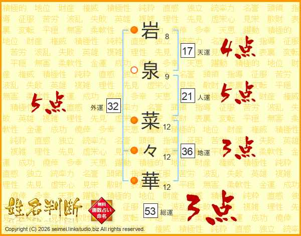 岩泉菜々華さんの外運は32画の5点!