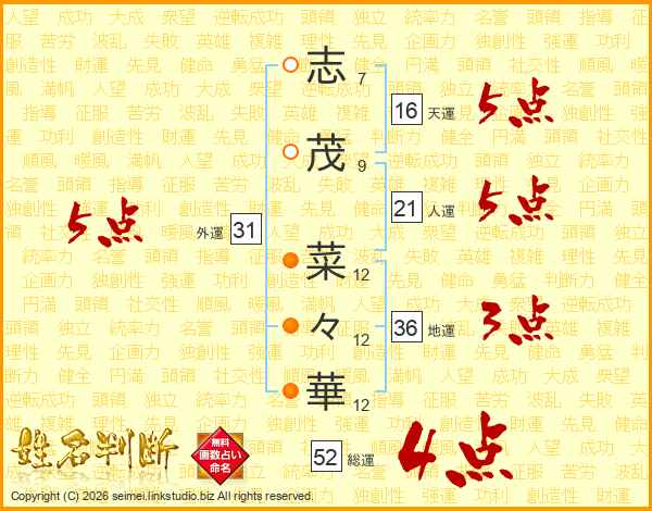 志茂菜々華さんの総運は52画の4点!